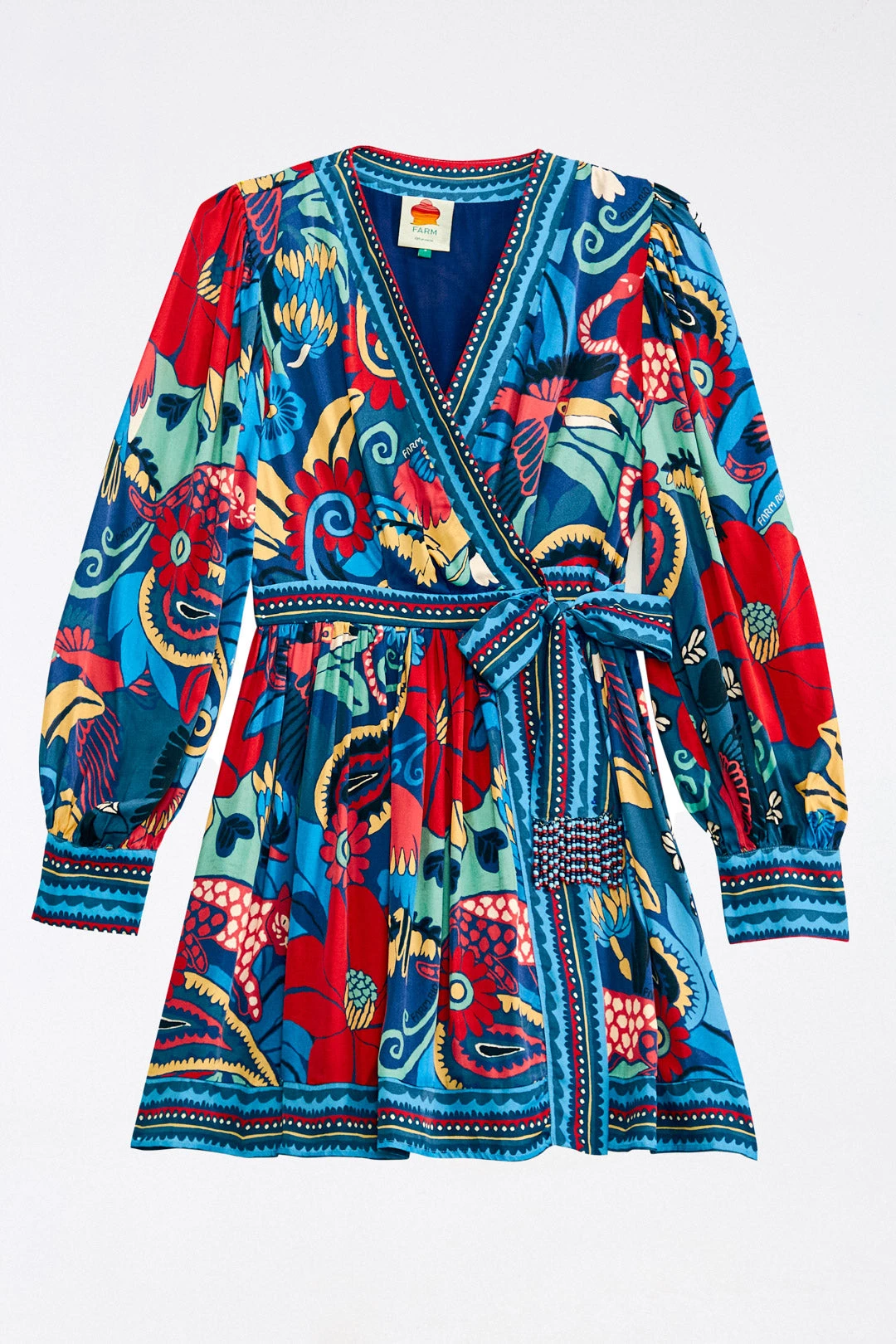 It’s not difficult to shine while wearing your new fave dress: the Blue Vintage Forest Lenzing™ Ecovero™ Viscose Mini Dress is here to walk you through joyful seasons year-round! It has a wrap fit with ties and beaded fringes, a flowy skirt to follow your bold moves, and an awe-inspiring print. If you match it with cool shoes and warm layers, the standout look is ready to drop some jaws wherever you go, baby!