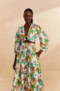 Give your wardrobe some tropical nature, and thank us later 🙂 The Yellow Rio Tapestry Maxi Dress brings not just fauna & flora icons but also a silhouette that follows your carefree moves. It has an effortless fit with a plunging neckline and ruffled detailing to be your companion from work meetings to happy hours to date nights without changing. Invite cool shoes, colorful accessories, and get ready to spread joy all season long.